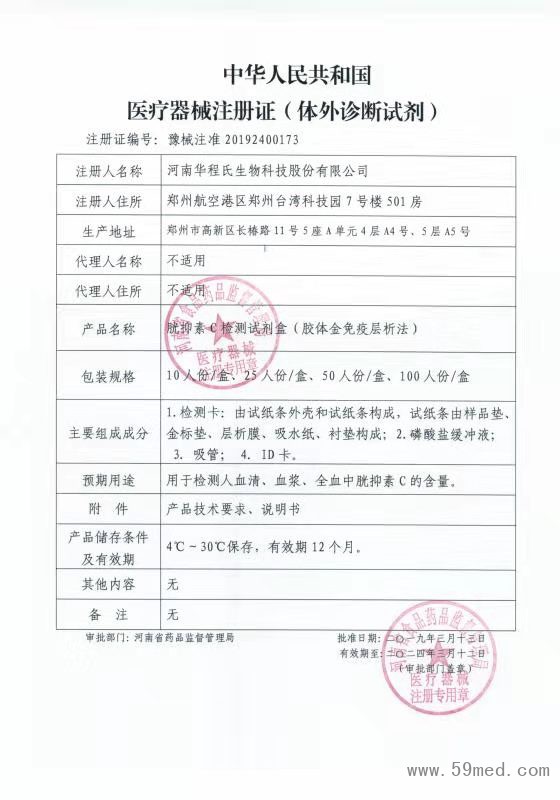 中華人民共和國醫(yī)療器械注冊證(體外診斷試劑)