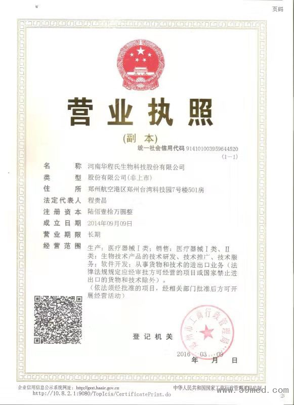 發(fā)證機(jī)構(gòu): | ??鄭州市工商行政管理局 | 發(fā)證時間 : | ??2016-03-09 |