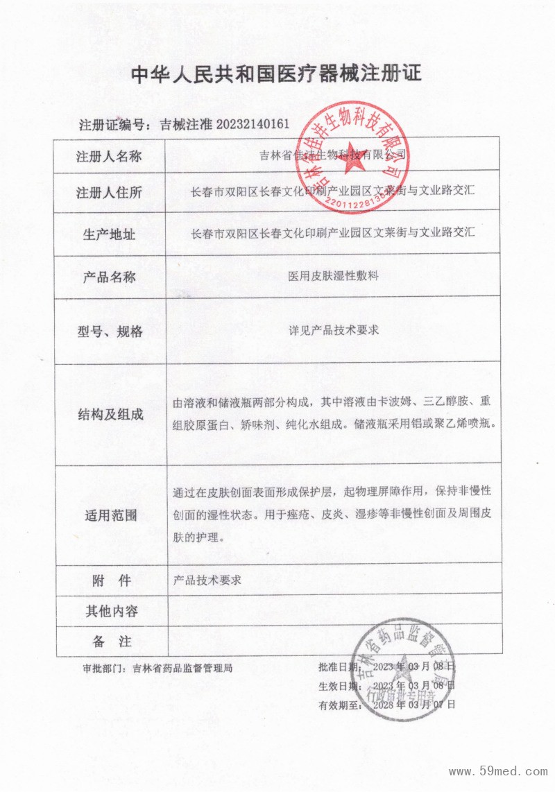發(fā)證機(jī)構(gòu): | ??吉林省藥品監(jiān)督管理局 | 發(fā)證時(shí)間 : | ??2023-03-08 |