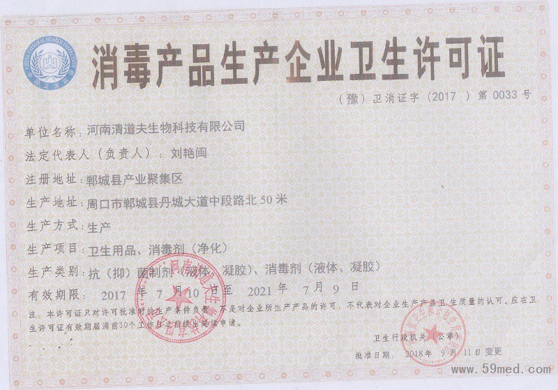 發(fā)證機(jī)構(gòu): | ??河南省衛(wèi)生和計(jì)劃生育委員會(huì) | 發(fā)證時(shí)間 : | ??2018-09-11 |