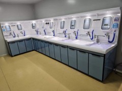 抗菌材料;臺面、洗消槽及干燥臺采用防泛水設(shè)計,清洗過程中濺到臺面的液體全部會
