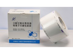 根據(jù)待滅菌物品的體積,截取合適長度的包裝袋,裝入滅菌物品后兩端用封口機(jī)封口(封口溫度為120℃),將包裝袋放入滅菌器內(nèi)進(jìn)行滅菌處理。滅菌完成后,取出包裝袋觀察醫(yī)用透析紙表面的指示色塊變色情況,如果指示色塊顏色由藍(lán)色變?yōu)榧t色,說明包裝袋已經(jīng)過過氧化氫滅菌處理。